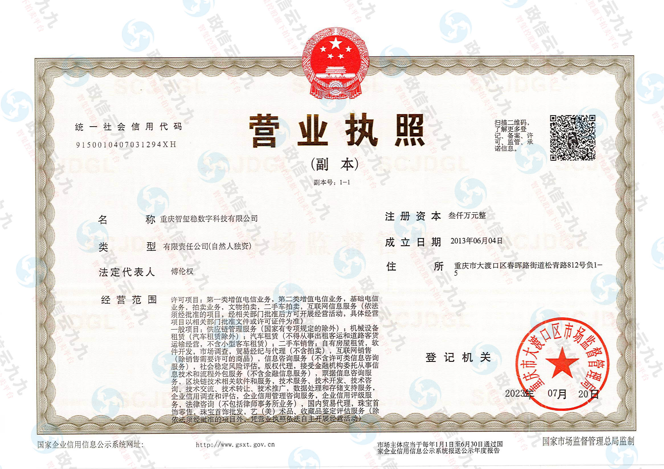 重庆智玺稳数字科技有限公司及政信云九九平台:
